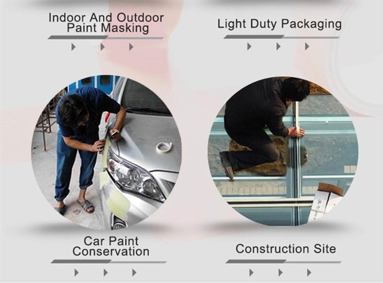 В маскирующей ленте в качестве подложки используется крепная бумага, которая покрыта резиновым клеем. Подходит для различной температурной стойкости с более чистым удалением. никаких остатков клея. он используется для фиксации резисторов, конденсаторов, маскировки и автомобильной промышленности в процессе распыления окраски.
