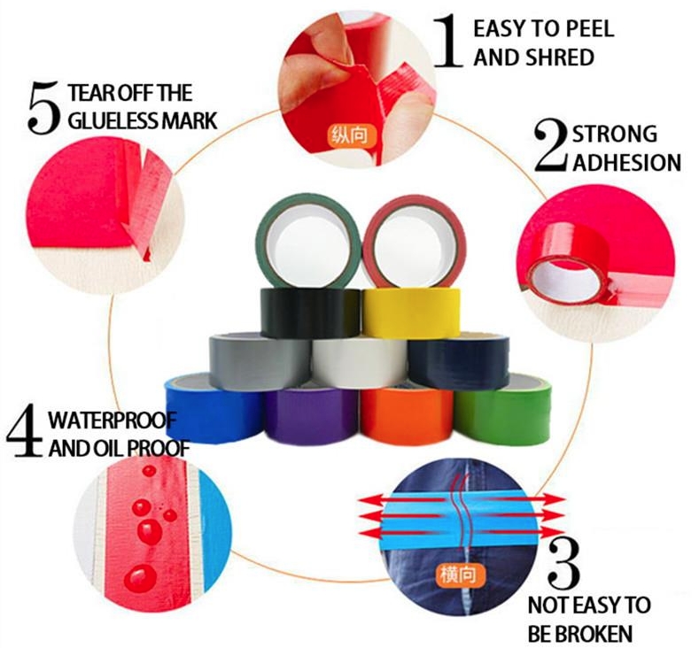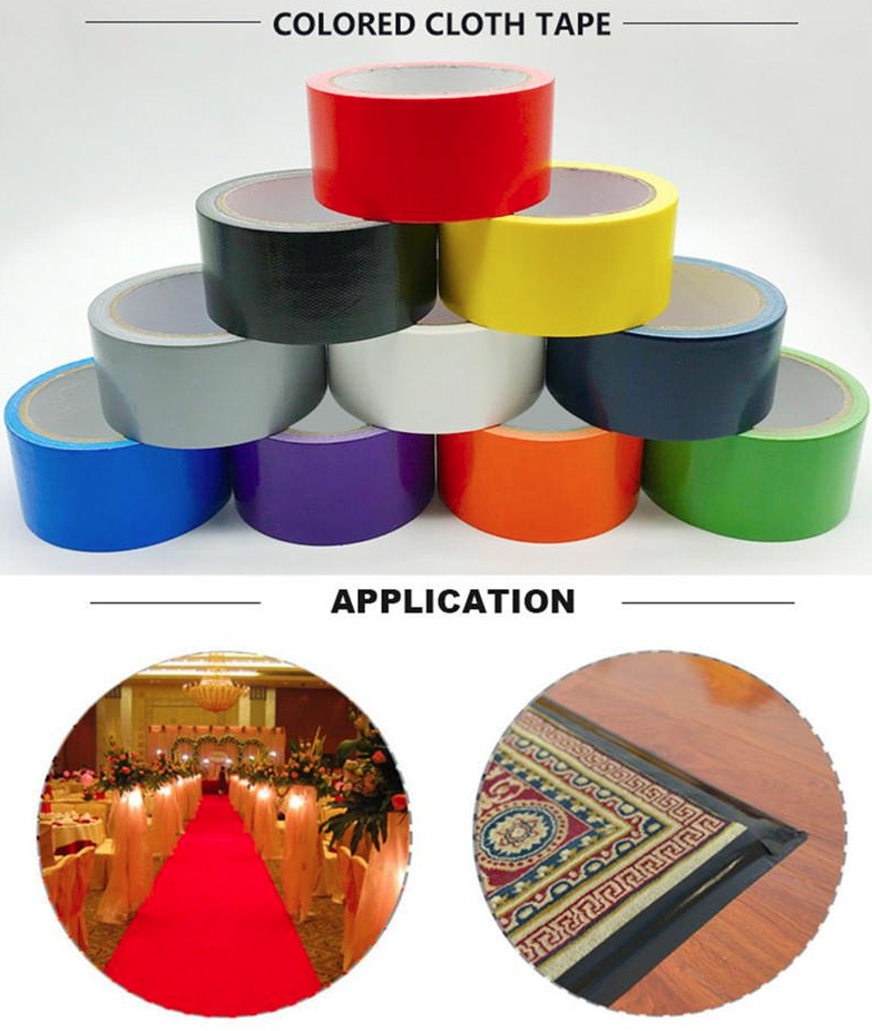 тканевая лента изготовлена из полиэтилена и марлевого волокна в качестве основного материала и покрыта высоковязким синтетическим клеем. Он обладает сильной силой отслаивания и растягивания, устойчив к смазке, антистарению, высокой температурной стойкости, водонепроницаемости и антикоррозионной стойкости. высококлеевые ленты с большой прочностью клея делают этот продукт не только привлекательным и красочным, но и очень универсальным. это твердый и необходимый клей для ковров.